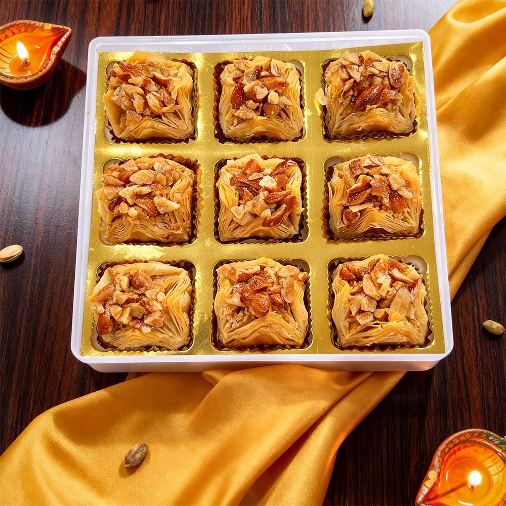 Planning for a birthday, wedding, or corporate hamper? Order almond pyramid baklava sweets now and make every box a warm, memorable gesture from Prem Ni Mithaas.
