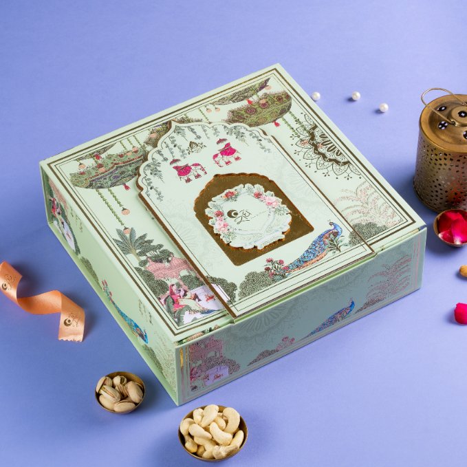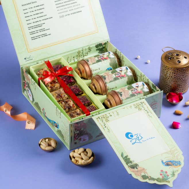 Alongside these, the box also contains signature Indian sweets for a true festive touch. It includes Sugarless Cranberry Bites and Sugarless Rose Dates Delight treats that add a modern, health-focused twist to the traditional mix.