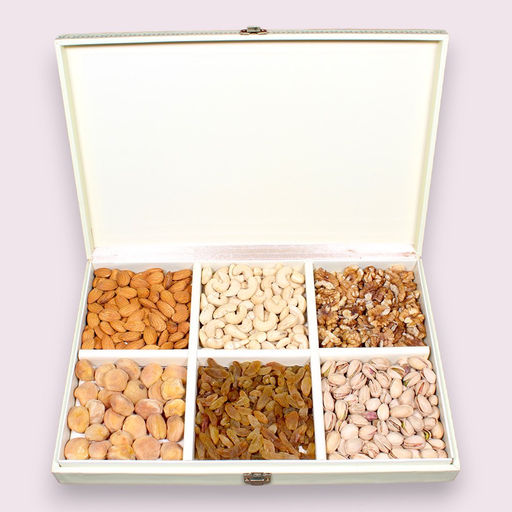 Inside, you’ll find wholesome cashews, almonds, pistachios, walnuts, apricots, and raisins—each chosen for their freshness and natural flavor. The sturdy MDF packaging keeps everything neat and makes the gift feel extra special. This box is a convenient way to offer variety and a touch of tradition in one hassle-free, attractive set.