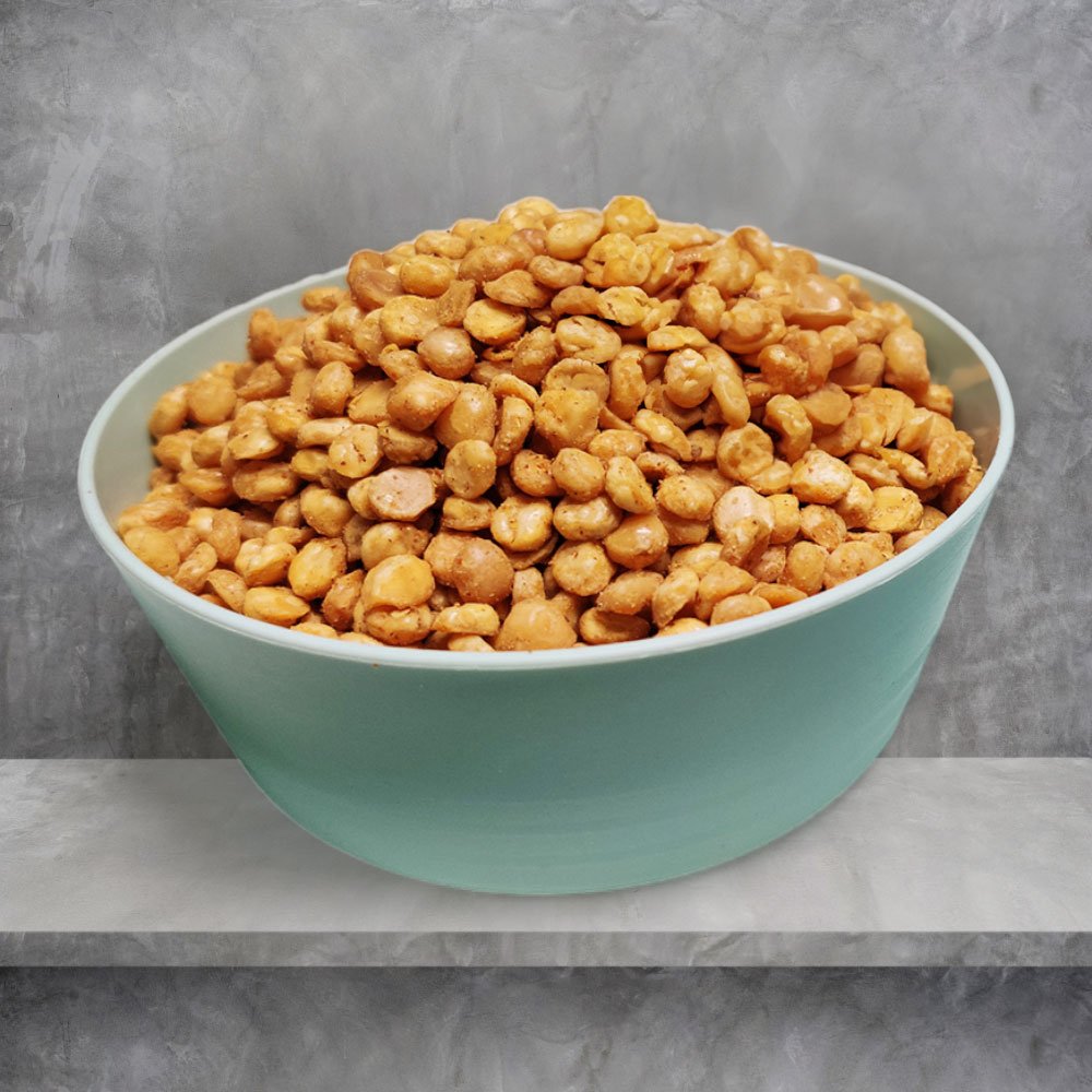 Roasted Chana Daal from Radhe Prem Ni Mithaas is a crunchy, lightly salted snack made from roasted split chickpeas (Bengal gram). Each bite offers natural nuttiness and satisfying crispness, perfect for munching at tea time or as a quick, healthy break. This snack is high in plant-based protein and fiber while being low in fat, making it a smart choice for those aiming for wholesome, clean ingredients without extra oil.
